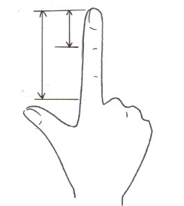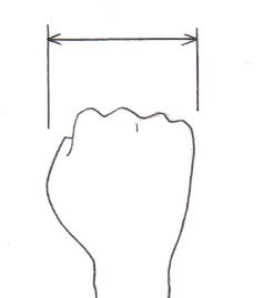 着付ける時に知っているのが便利なのが手尺です。 よく、本などを読むと帯の端(『たれ』といいます)を20センチほど残して‥‥‥とか、衿を5ミリほど‥‥‥などと寸法が出てきます。でも、いくら綺麗に着るためとはいっても、着物を一生懸命着ている時に定規を取り出して測るのは難しいですよね? そういう時に手尺を覚えておくと便利です。測っておくのは下記の4つの寸法。 正直言って、帯を結ぶ時に正確なセンチって不要です。帯ひとつひとつの長さが違っていたりしますし、体系や生地の厚さでも帯の残りは随分変わります。なので、「だいたい5センチ」とか「だいたい20センチ」が測れれば充分ですよ〜。 ふつうのお買い物の時なども便利なので定規を用意してレッツ計測☆ ![]() 『グーの横幅』 これは「衿の抜きはゲンコツくらい」と着付けの本によく出てきます。 衿の抜き以外ではあんまり使わないかもしれませんが、知っておくと便利です。 ![]() 『パーを思いっ切り広げた時の親指から小指までの幅』 これが一番使います!!私の手だとだいたい18センチなので「だいたい20センチ」の時は一回指を思いっ切り広げて、さらに下の方法で残り2センチを計測しています! ![]() 『人差し指の一関節と、指全体の長さ』(これがじゃんけんのピーのところってあるんですよね?) 一関節が私の場合は2センチなので、これと上を合わせて20センチです。 人それぞれサイズが違うので寸法も微妙に違いますが、『だいたい○○センチ』というアバウトな感じて測っておいて下さい。ミリまで測る必要なんてありませんよ(^o^) |